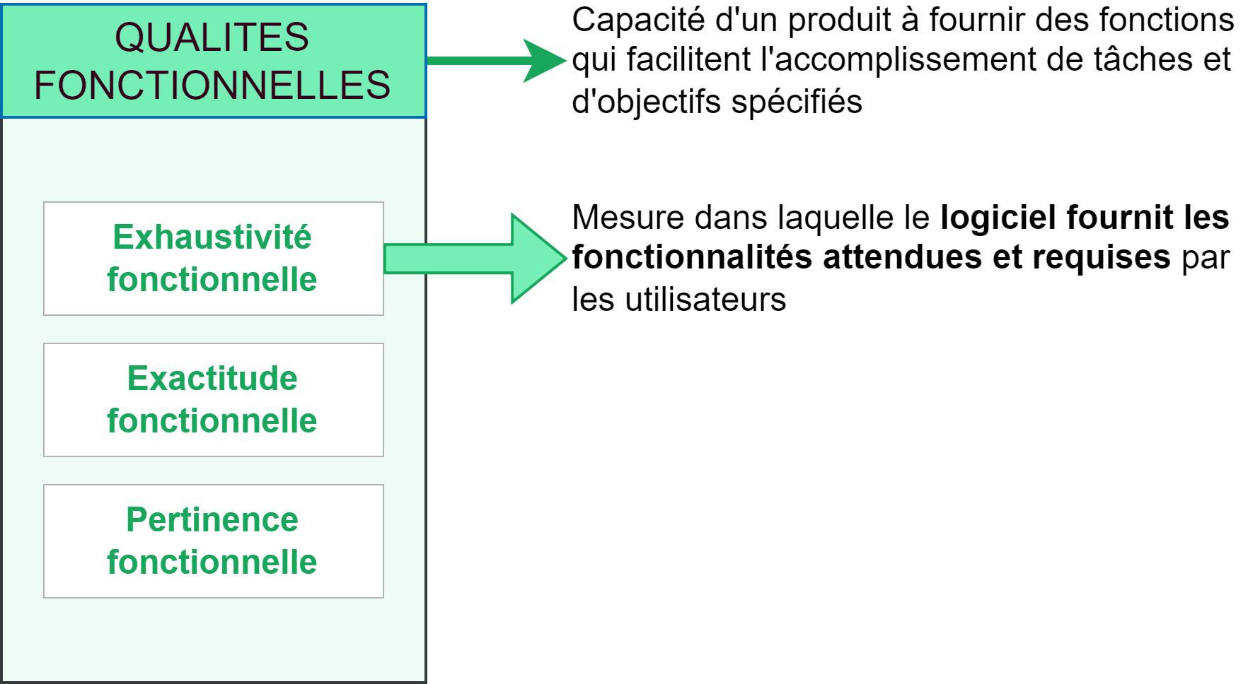 II - Mise en œuvre des critères Qualité pour TesfriX1 - QUALITES FONCTIONNELLES 1A - Exhaustivité fonctionnelle - Mise en œuvre L'approche ISO 25010 : En substance: Le logiciel ne manque d’aucune fonctionnalité critique
