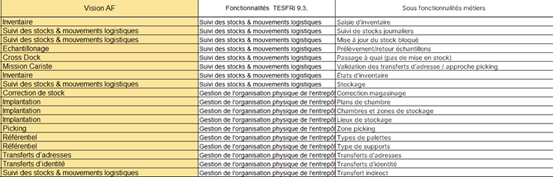 Le périmètre fonctionnel utilisé de Tesfri 9.3 a été listé