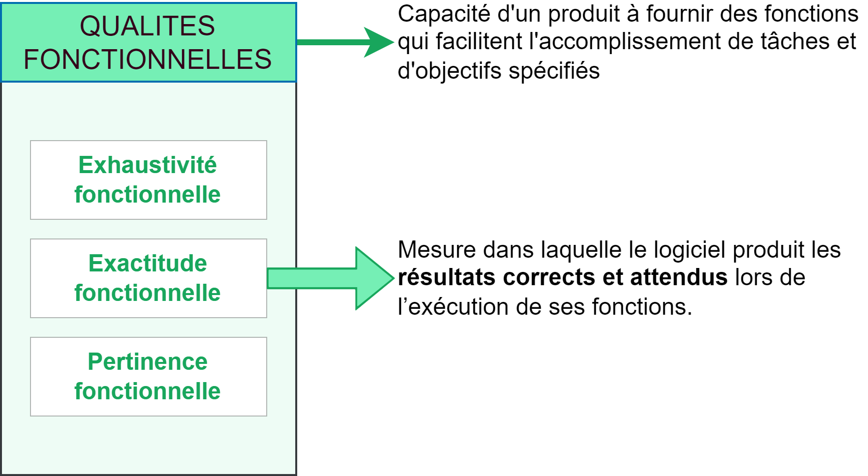 II - Mise en œuvre des critères Qualité pour TesfriX1 - QUALITES FONCTIONNELLES 1B - Exactitude fonctionnelle - Mise en oeuvre L'approche ISO 25010 : En substance: Le logiciel fournit correctement les résultats attendus
