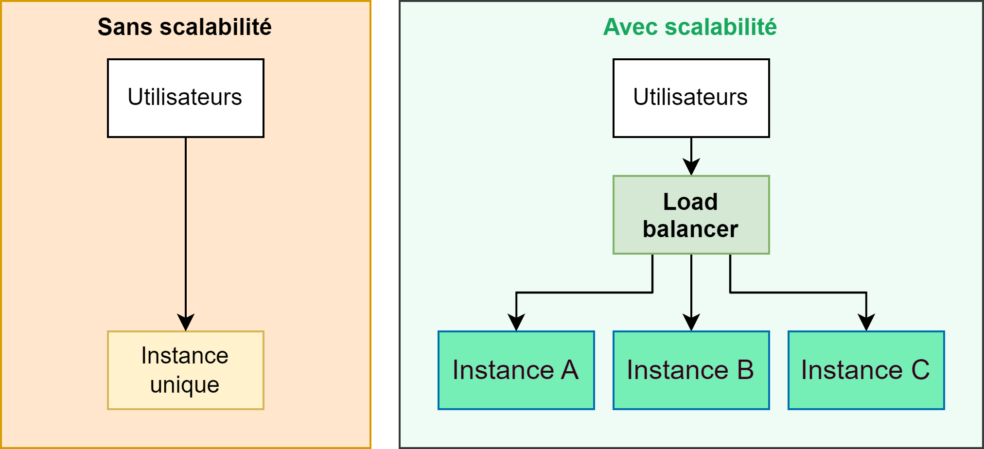 La scalabilité horizontale est une stratégie qui consiste à gérer plusieurs instances d’un même service pour augmenter sa capacité.