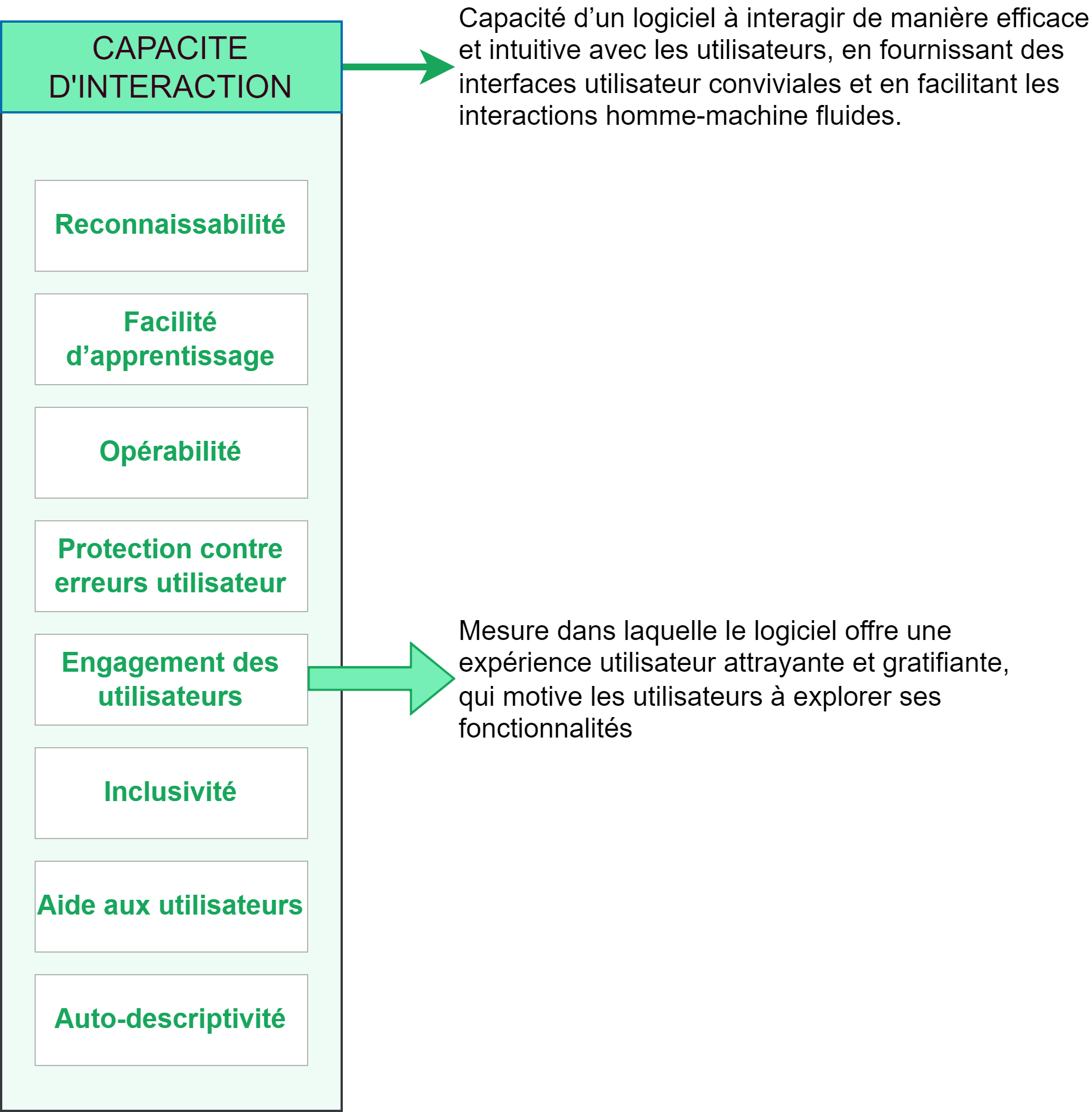 II - Mise en œuvre des critères Qualité pour TesfriX4 - CAPACITE D'INTERACTION 4E - Engagement des utilisateurs L'approche ISO 25010 : En substance: L'expérience utilisateur est attrayante, l'interface est conviviale, les utilisateurs ont plaisir à utiliser le logiciel