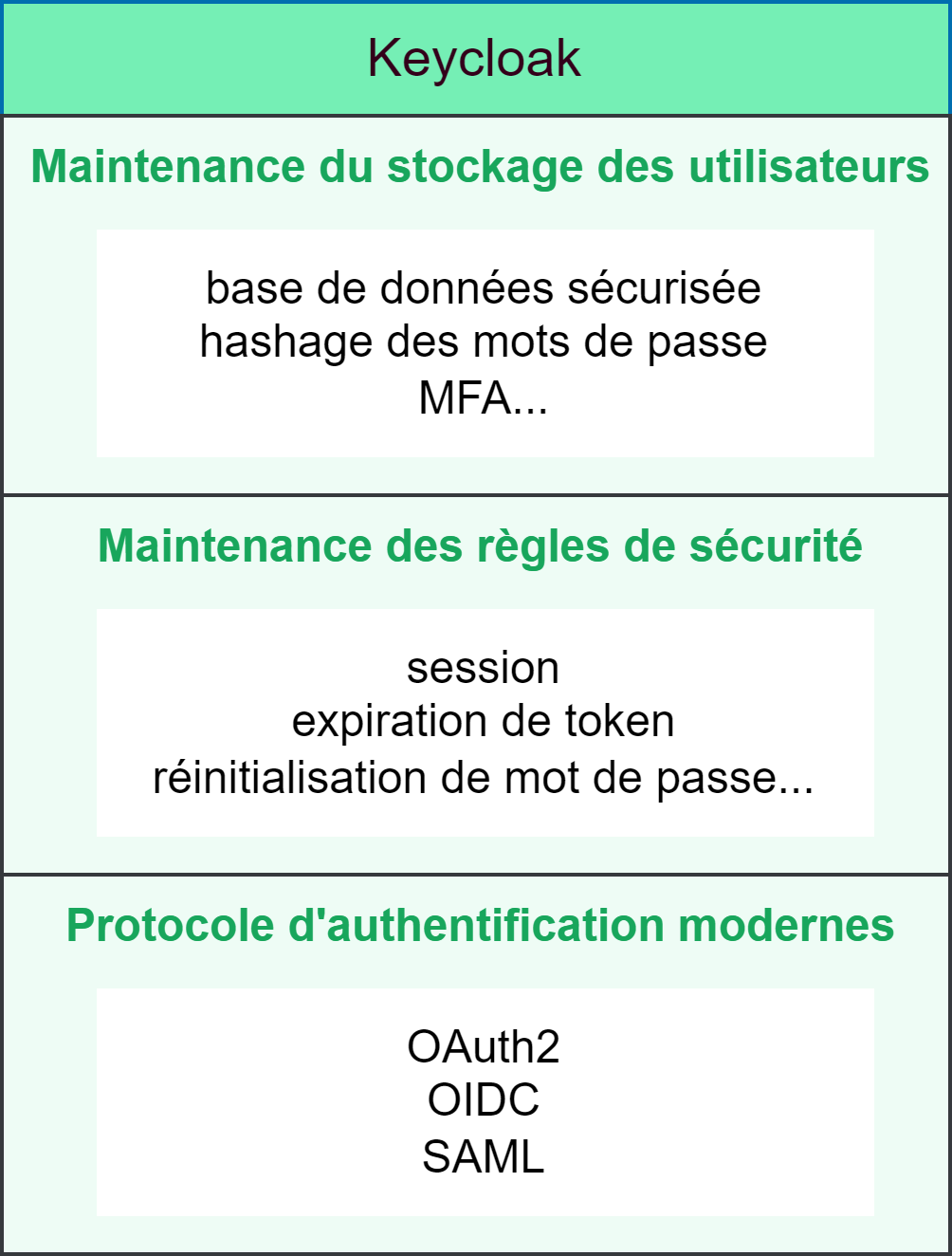 Dans Keycloak, plusieurs options sont activables si besoin; parmi elles: